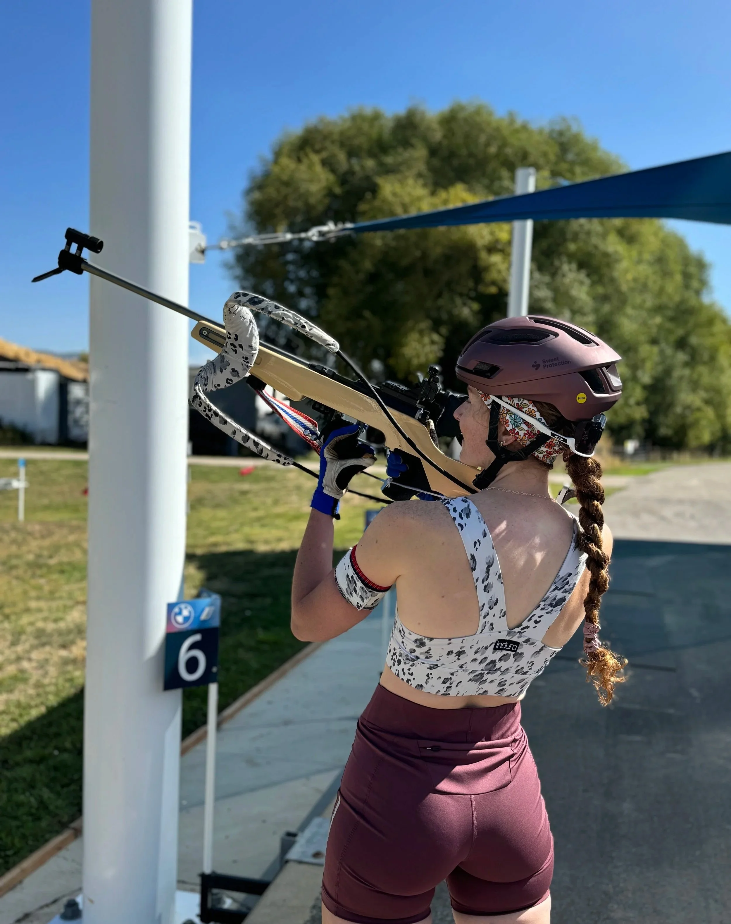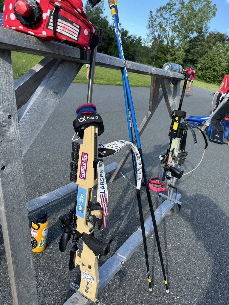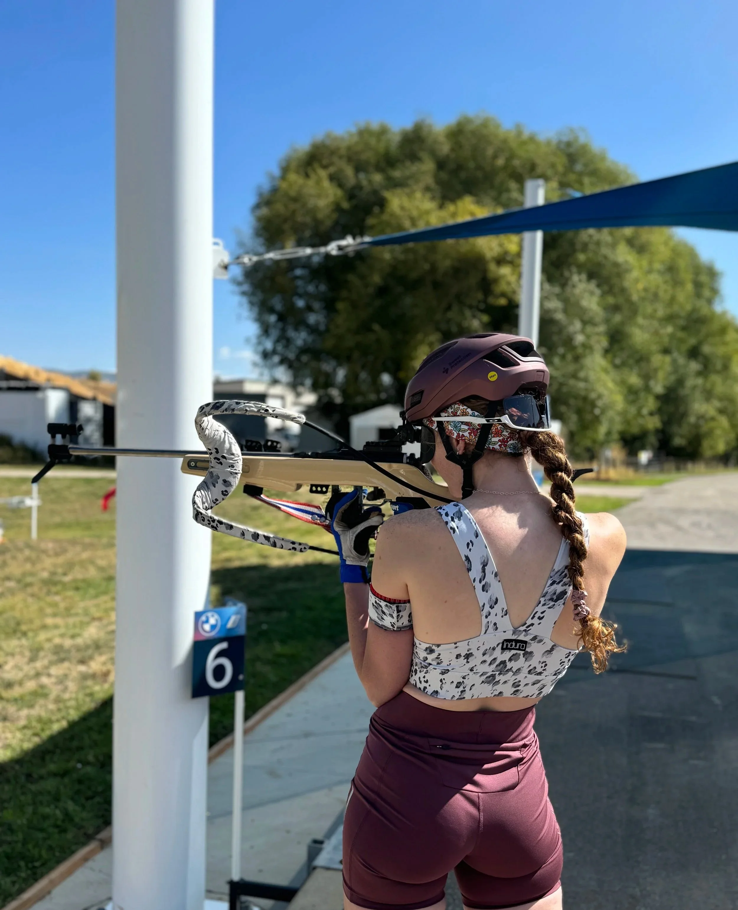 I currently have three stickers on my rifle. Starting from back to front, I have the logo for the military. This is what a unit patch on our uniforms would look like. It is a biathlon tab over a rifle crossed with pair of ski poles. Though the military is not an actual “sponsor” of mine, they are my employer and I could not do what I do without them! The second sticker is last year’s IBU sticker which is required for all biathletes competing in the IBU Cup. And my third sticker is Nordjork! They are a huge supporter and a fun company based out of Crested Butte, Colorado selling nordic themed products. Check them out at the link above and you can use code ZOEMAY for 10% off your goodies. FYI - they have an upcoming product drop of the new 2025/2026 collection!